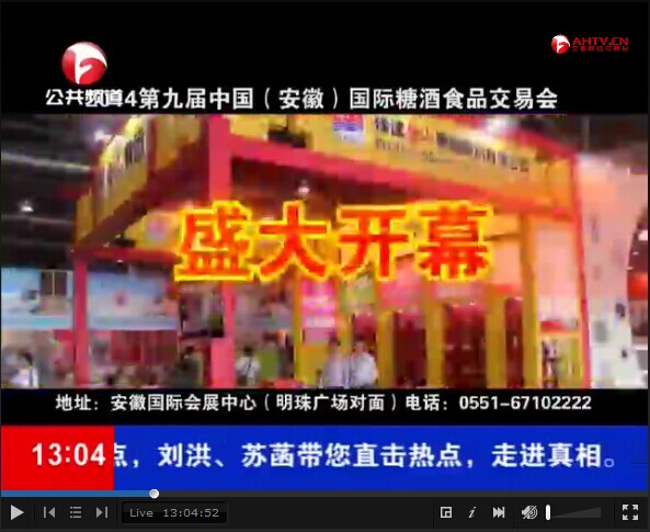 安徽糖酒會宣傳推廣第一彈已花落安徽電視臺,安徽糖酒會與安徽電視臺, 經(jīng)濟生活頻道,公共頻道,投放廣告一個月。下面就讓我們一起感受下安徽糖酒會不一樣的魅力!