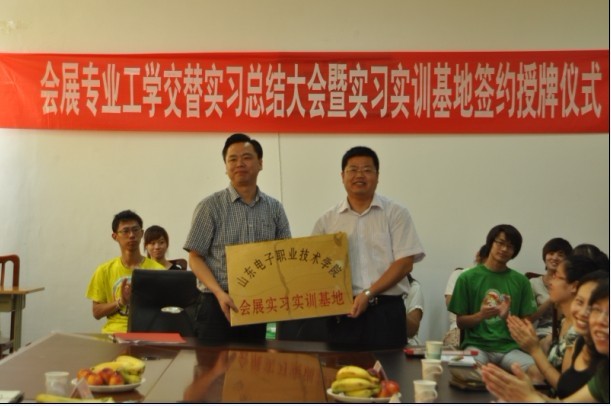2012年6月26日下午,中貿(mào)國際與山東電子職業(yè)技術(shù)學(xué)院舉辦了會展策劃與管理專業(yè)“工學(xué)交替”實習(xí)總結(jié)大會暨校外實習(xí)基地簽約授牌儀式。山東省會展業(yè)協(xié)會常務(wù)副秘書長燕飛、山東中貿(mào)國際經(jīng)濟貿(mào)易推廣服務(wù)中心主任杜磊及三位項目經(jīng)理應(yīng)邀出席,山東電子職業(yè)技術(shù)學(xué)院王協(xié)瑞副院長、管理系梁會亭主任及部分教師、輔導(dǎo)員和會展專業(yè)學(xué)生參加了此次會議。