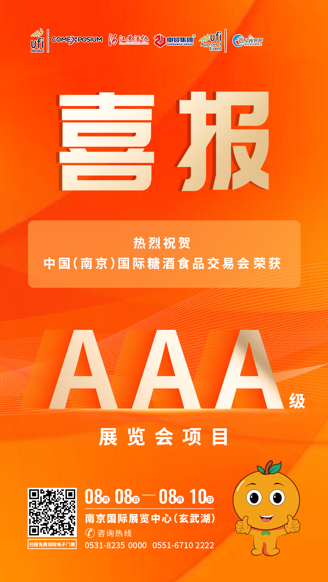 7月16日,江蘇省會議展覽業(yè)協(xié)會發(fā)布了江蘇省專業(yè)展覽會等級評定結果公示,中國(南京)國際糖酒食品交易會(簡稱南京糖酒會)榮獲3A展覽等級。