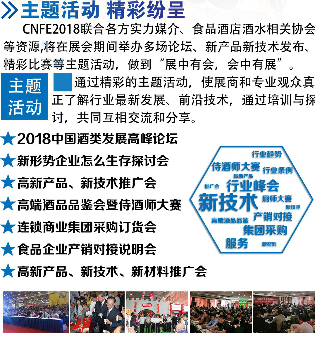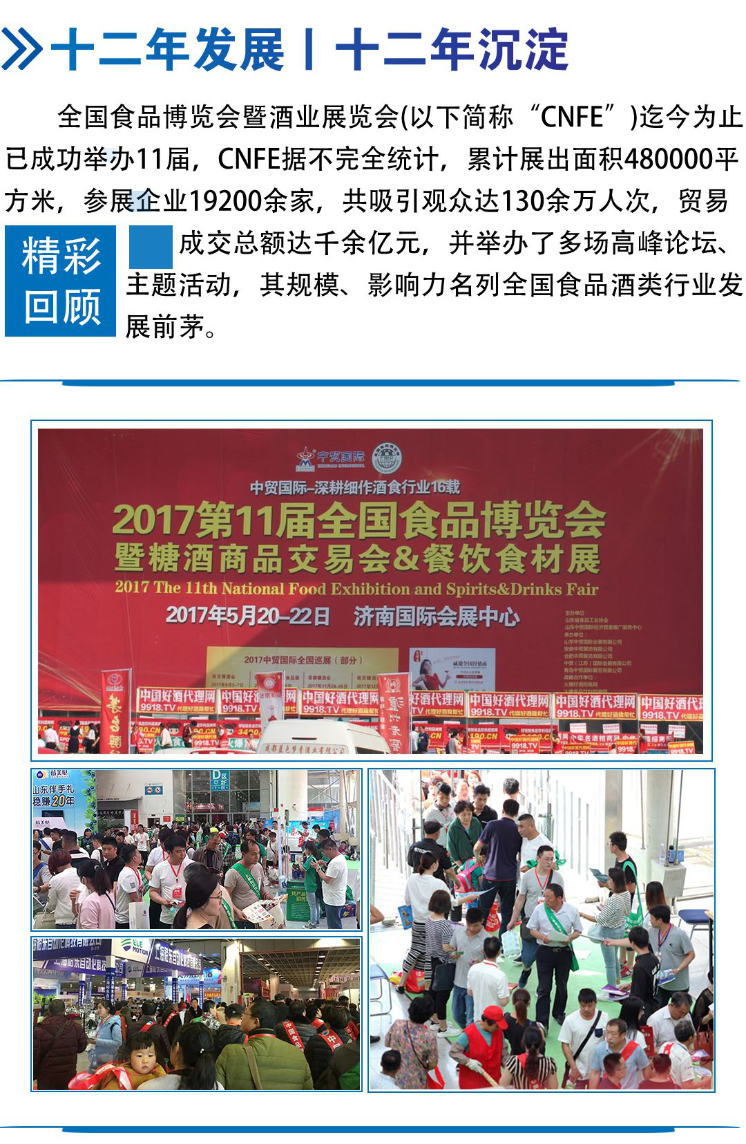 中貿(mào)集團(tuán)2018年將在山東濟(jì)南、安徽合肥、江蘇南京、黑龍江哈爾濱、浙江杭州等省市舉辦十余場次食品展、酒博會、餐飲展,形成聯(lián)動招商、資源互動和共享。