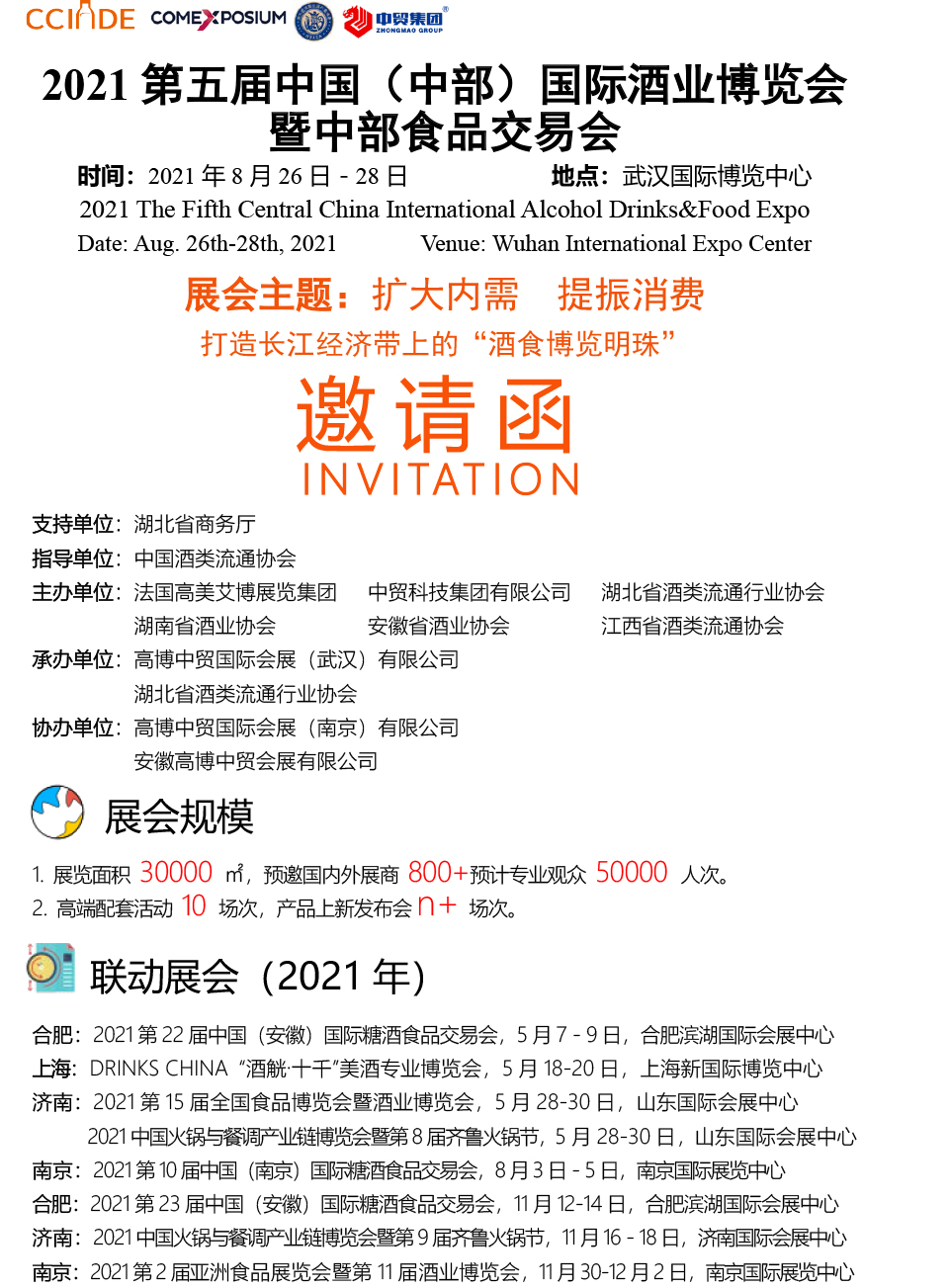 從長江走向世界2021第五屆中部酒博會暨食交會八月開展