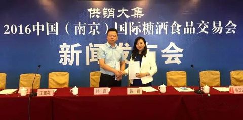 發(fā)布會正式開始之前,海南供銷大集控股有限公司華東區(qū)副總裁韓穎女士與山東中貿國際經濟貿易推廣服務中心董事長杜磊先生就“供銷大集”2016中國(南京)國際糖酒會簽署冠名合作協議。